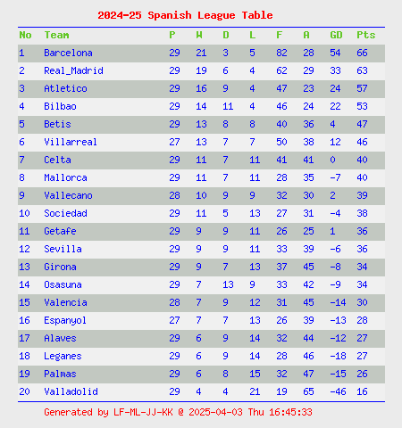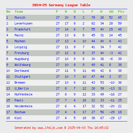 click country name to view League Table