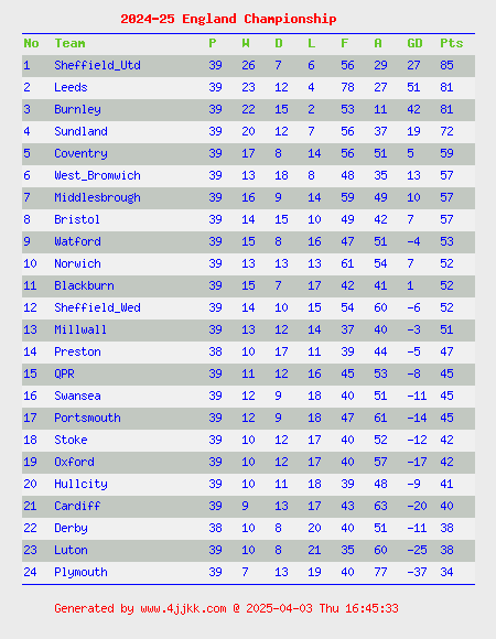 click team name to view team statistics