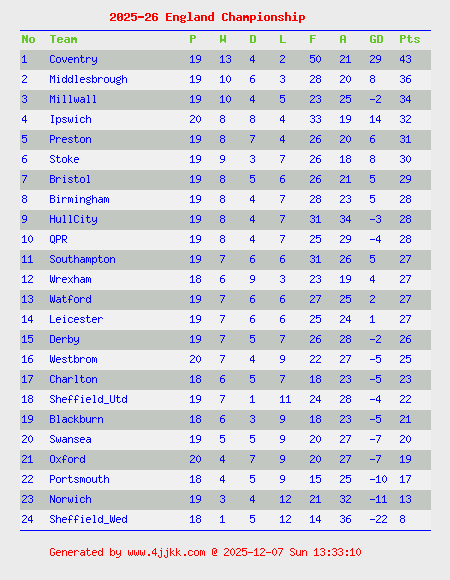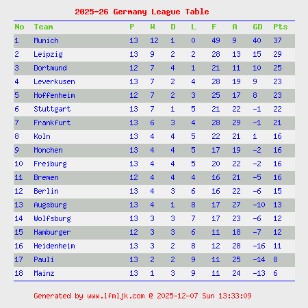 click country name to view League Table